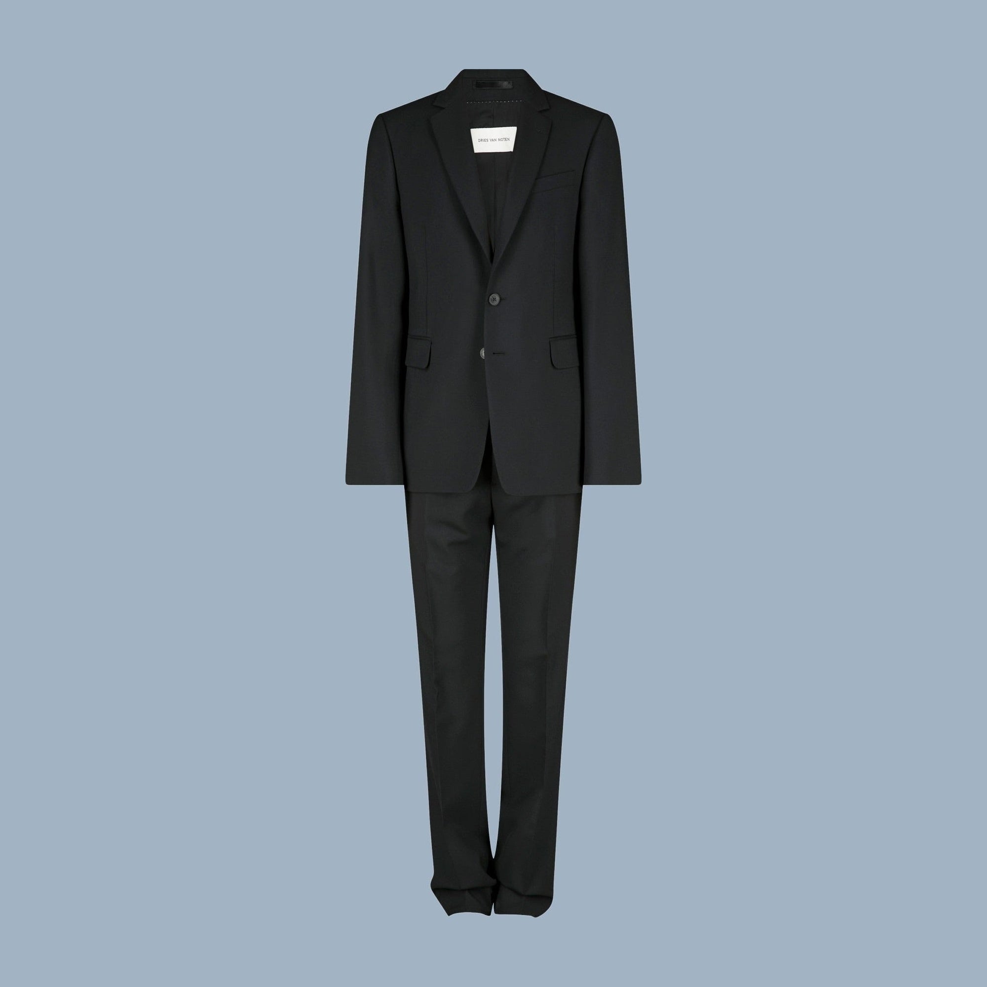 Dries Van Noten Kayne suit in black. Made in Morocco, of 83% wool, and 17% mohair.