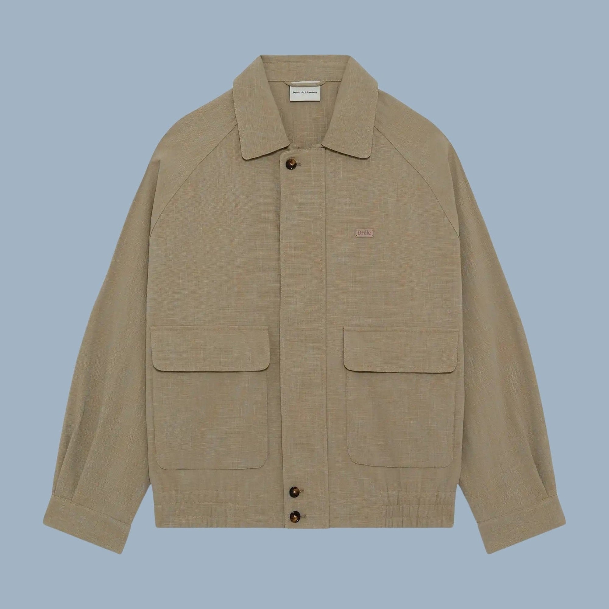 Drôle De Monsieur raglan cotton blouson in kaki. Made in Moldova, of 60% cotton, 34% viscose, 5% polyester, and 1% elastane.