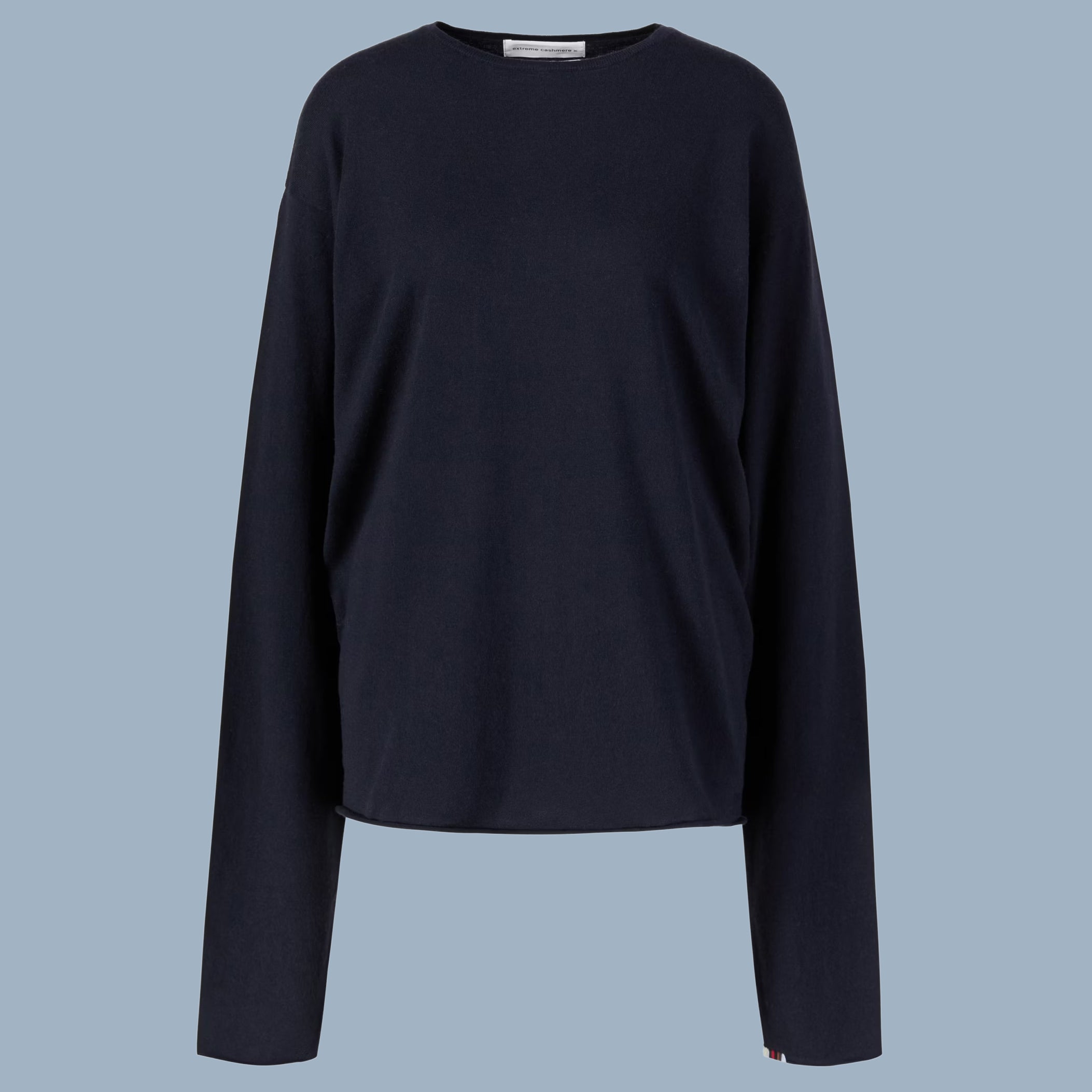 Extreme Cashmere longsleeve in navy. Made in China, of 70% cotton, and 30% cashmere.