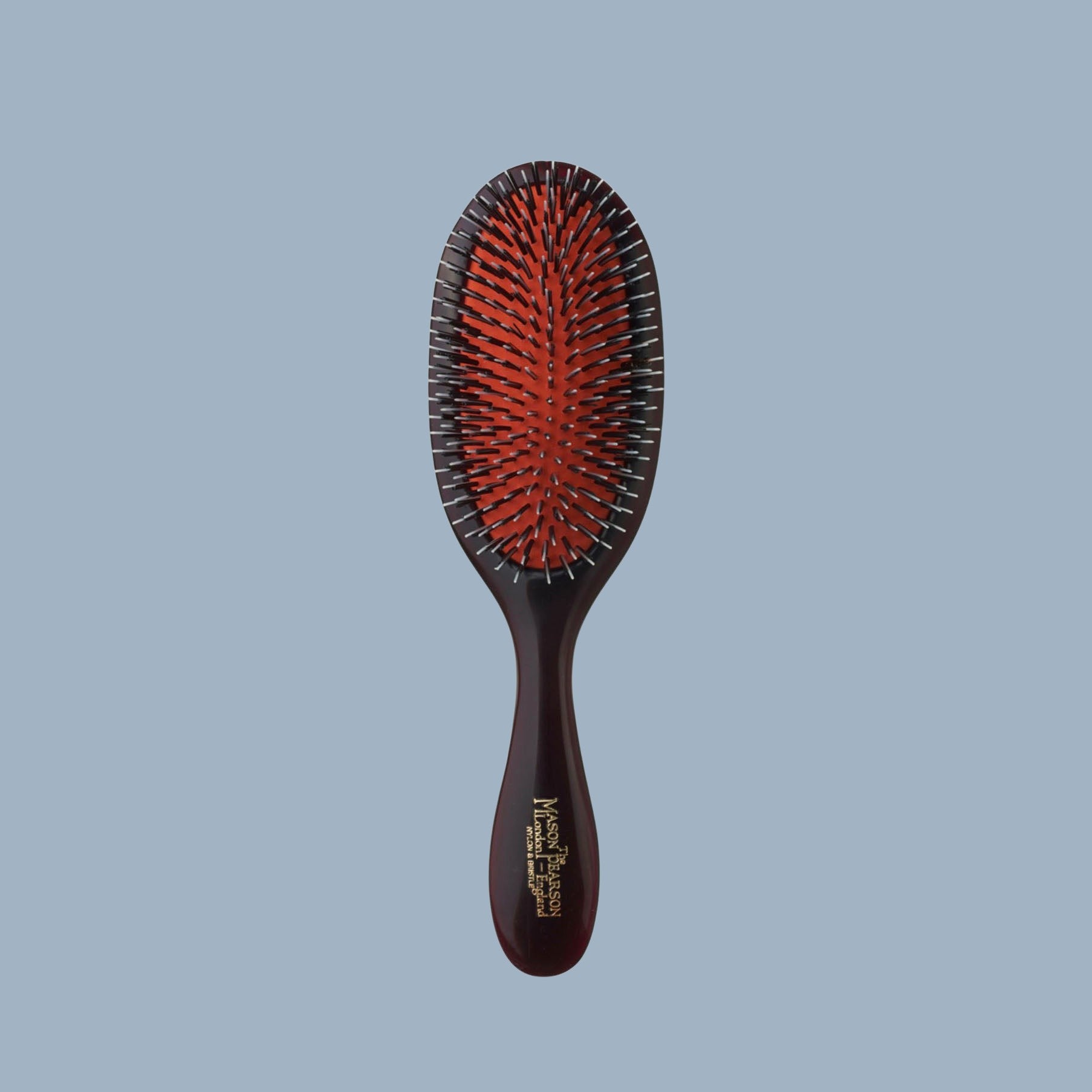 The BN3 'Handy Bristle and Nylon' brush by Mason Pearson is a smaller brush, specifically designed to cleanse, detangle, and revitalise normal to thick medium-short hair.