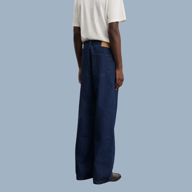 Another Aspect 4.0 wide jeans in dark blue denim. Made in Portugal, of 100% deadstock italian cotton.