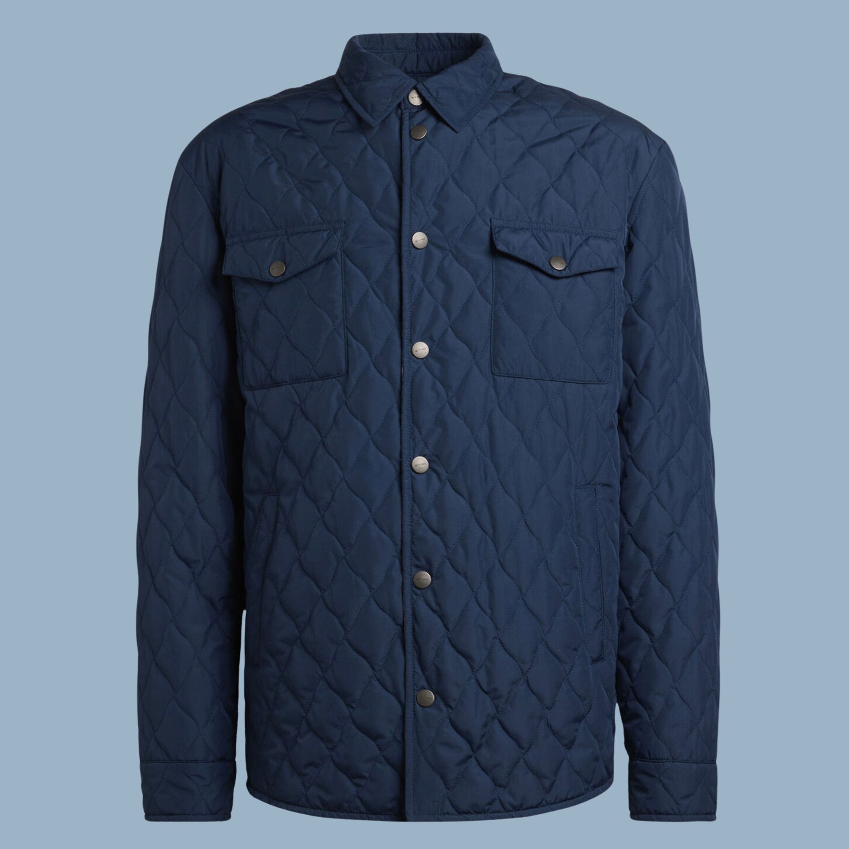 Etro quilted jacket in navy. Made in Serbia, of 100% polyester.