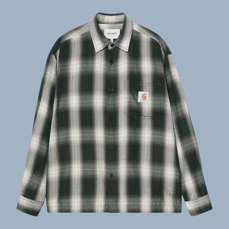Carhartt Harlin long sleeve shirt in green. Made in Vietnam, of 100% acrylic.