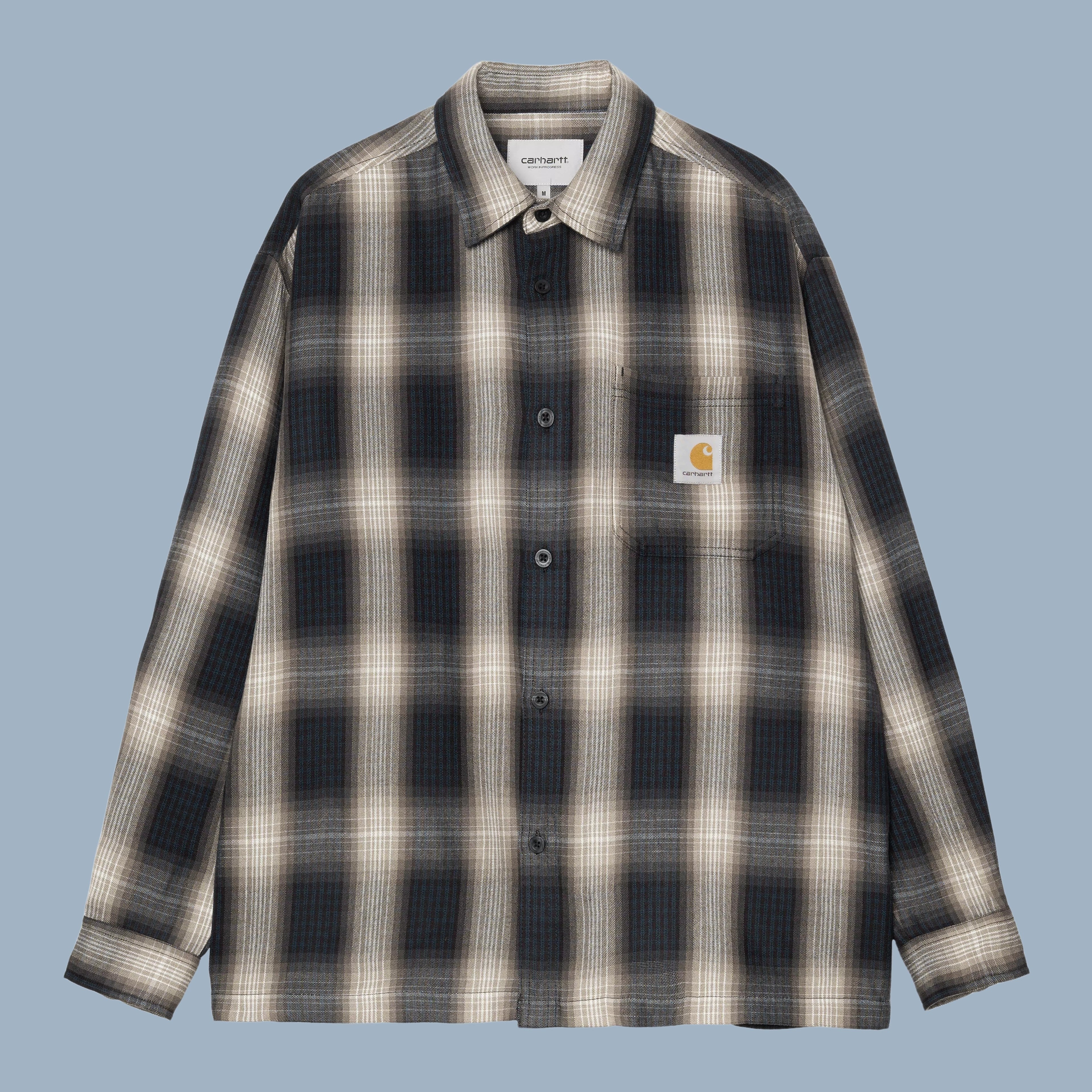 Carhartt Harlin long sleeve shirt in navy. Made in Vietnam, of 100% acrylic.