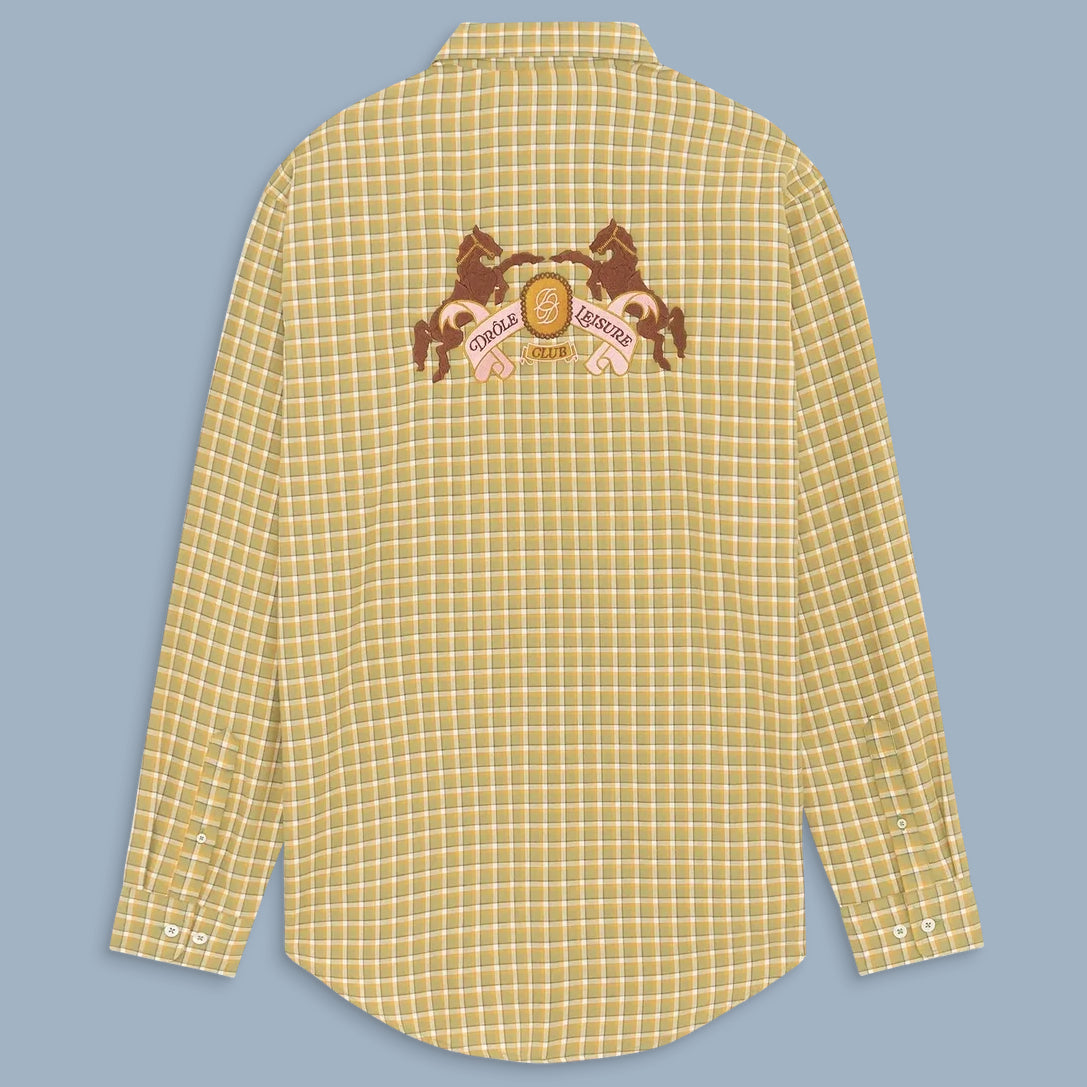 Drôle De Monsieur checkered shirt in kaki. Made in Portugal, of 94% organic cotton, and 6% kapok.