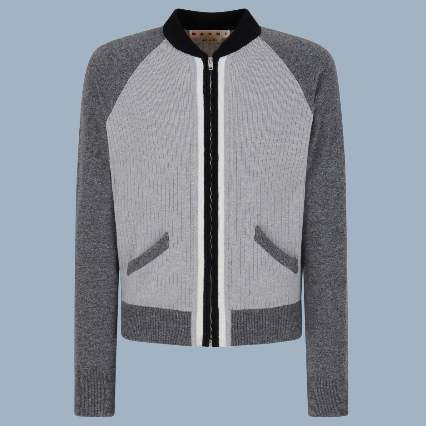 Marni cardigan in grey nuances. Made in Italy, of 100% virgin wool.