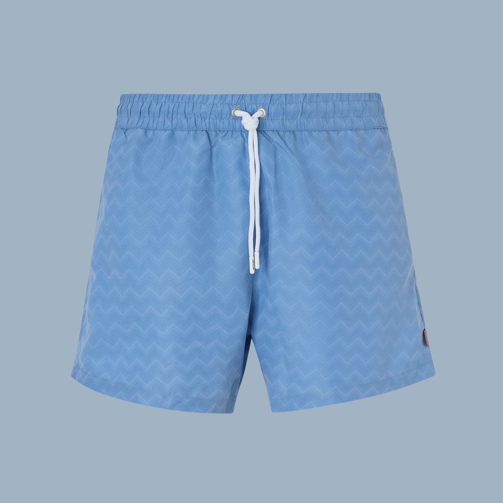 Missoni medium length swim shorts in blue. Made in Tunisia, of 100% polyester.