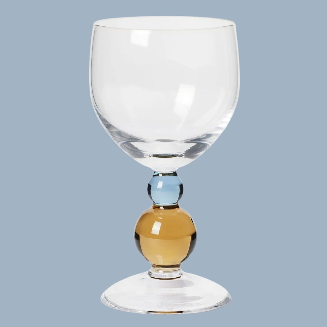 Akua Noam wine glass in blue and hazel.