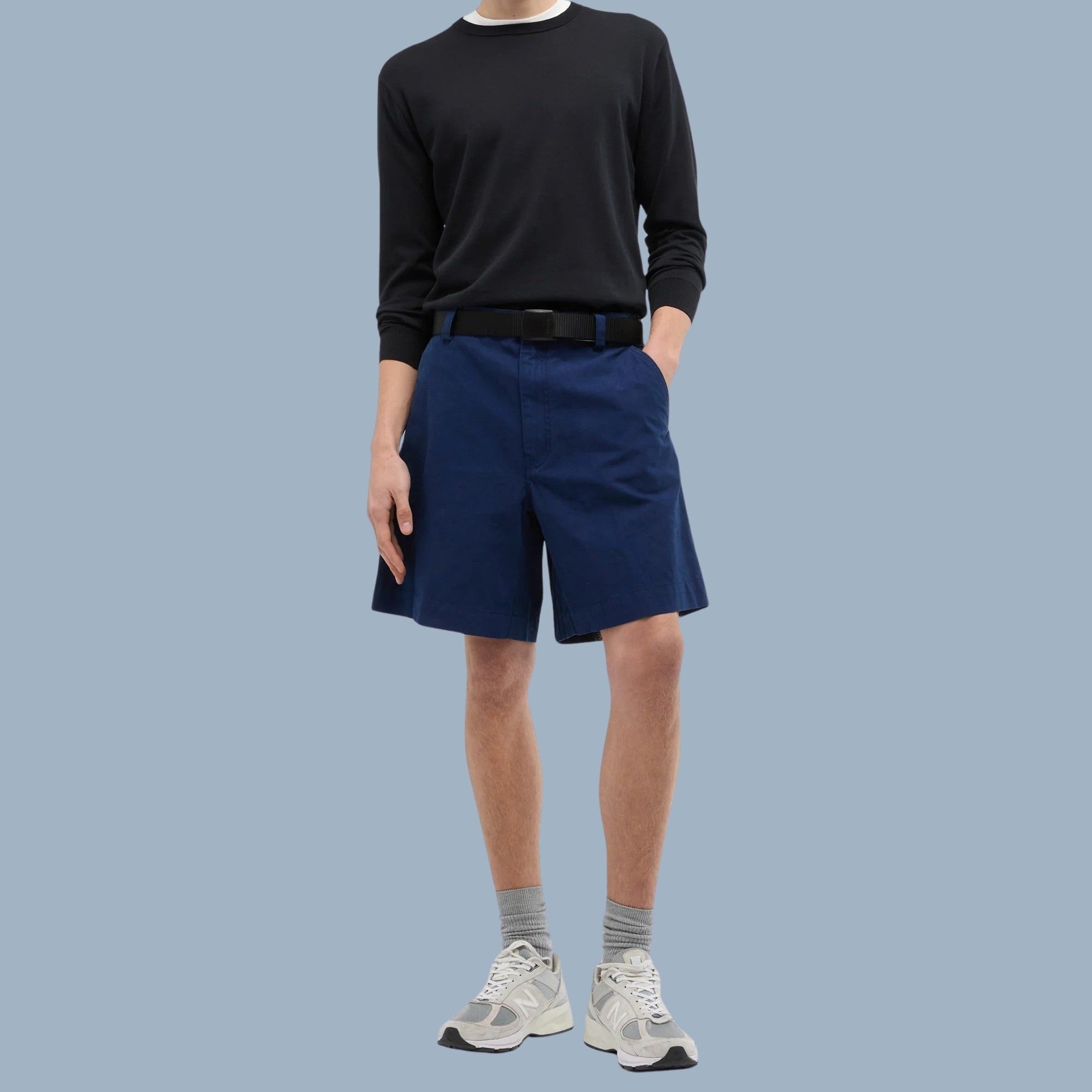 Aspesi Chino Shorts "Mod Axel" in navy. Made in Romania, of 97% cotton, and 3% elastane.