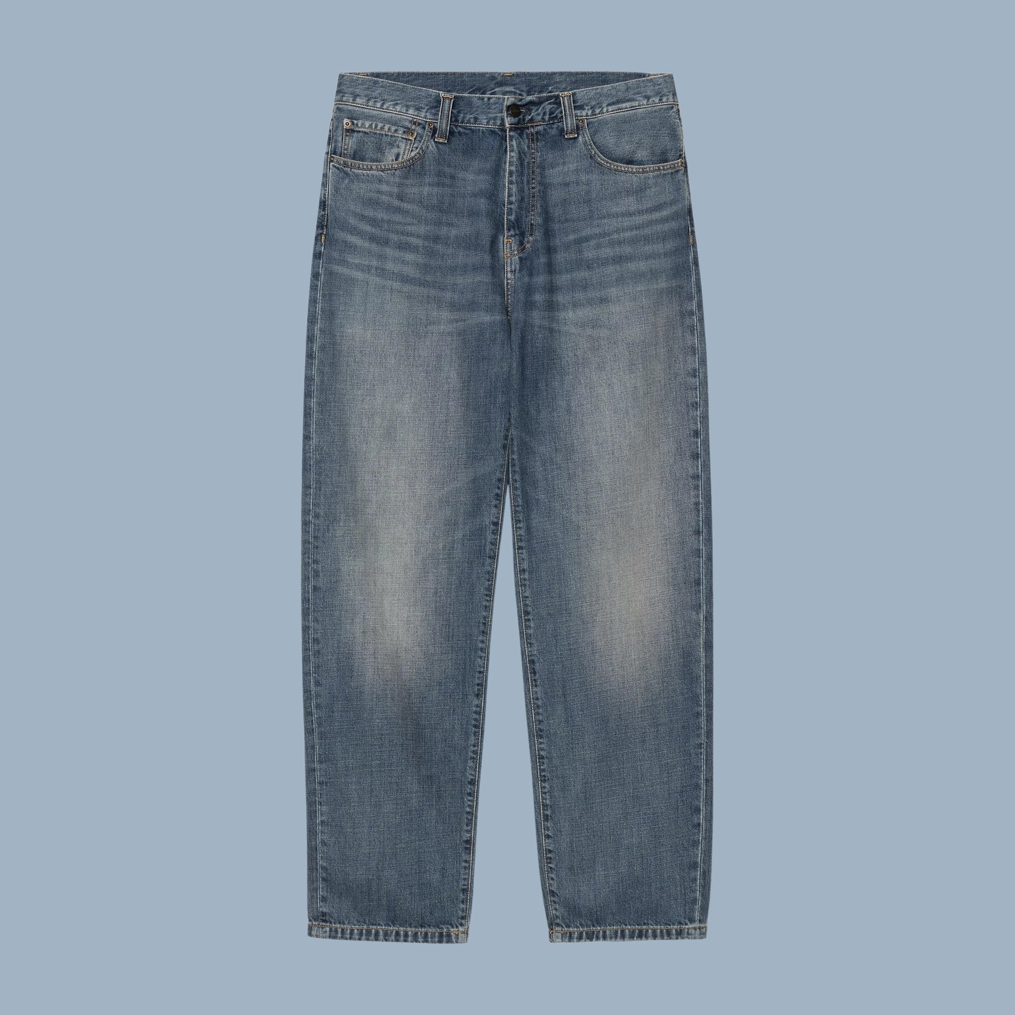 The Aaron Pant is a five-pocket style made from heavyweight cotton denim in a regular tapered fit. The item also features bartack stitching and rivets at vital stress points for added durability. An artificial leather Square Label appears on the back pocket.