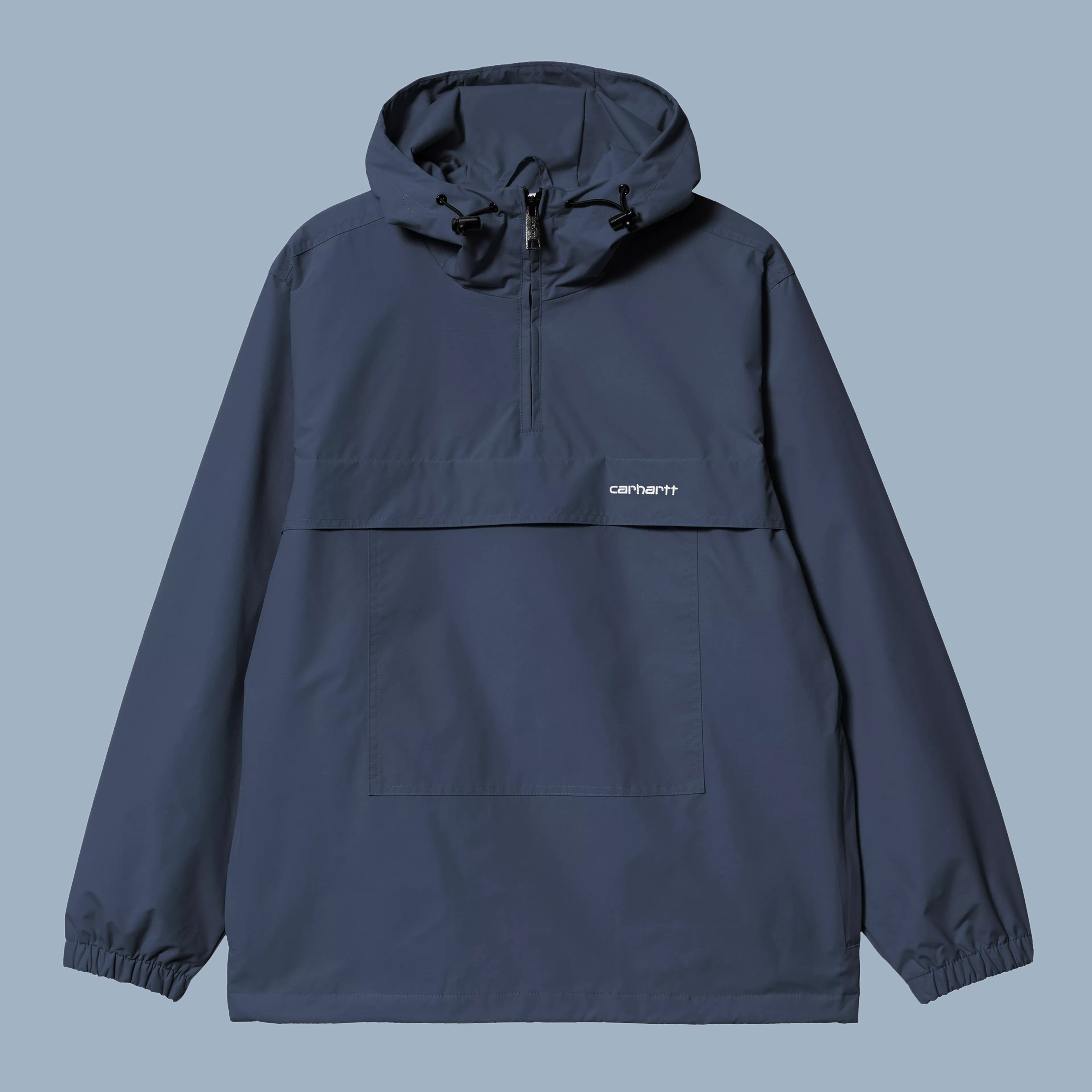 Carhartt windbreaker pullover in navy. Made of nylon, and polyester.