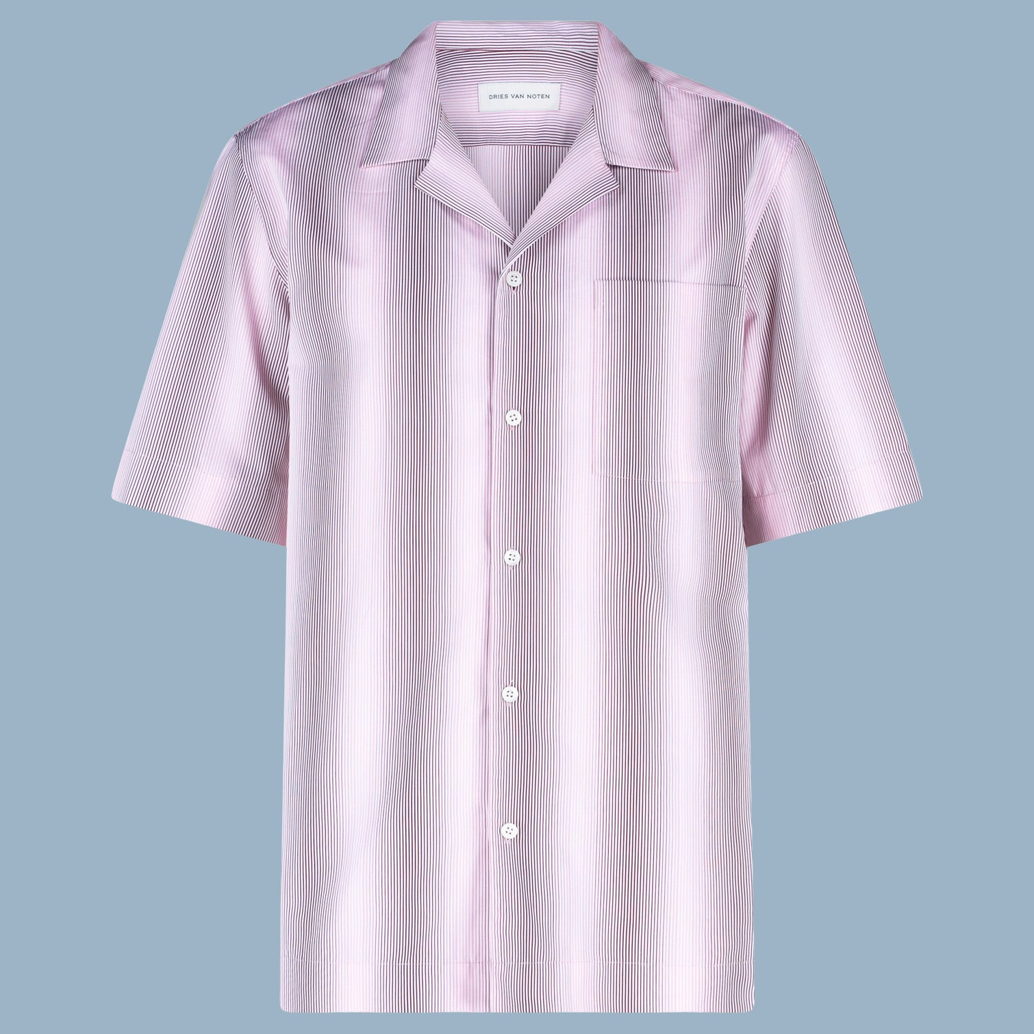 Dries Van Noten short sleeve Carltone shirt in pink. Made in Portugal, of 100% cotton.