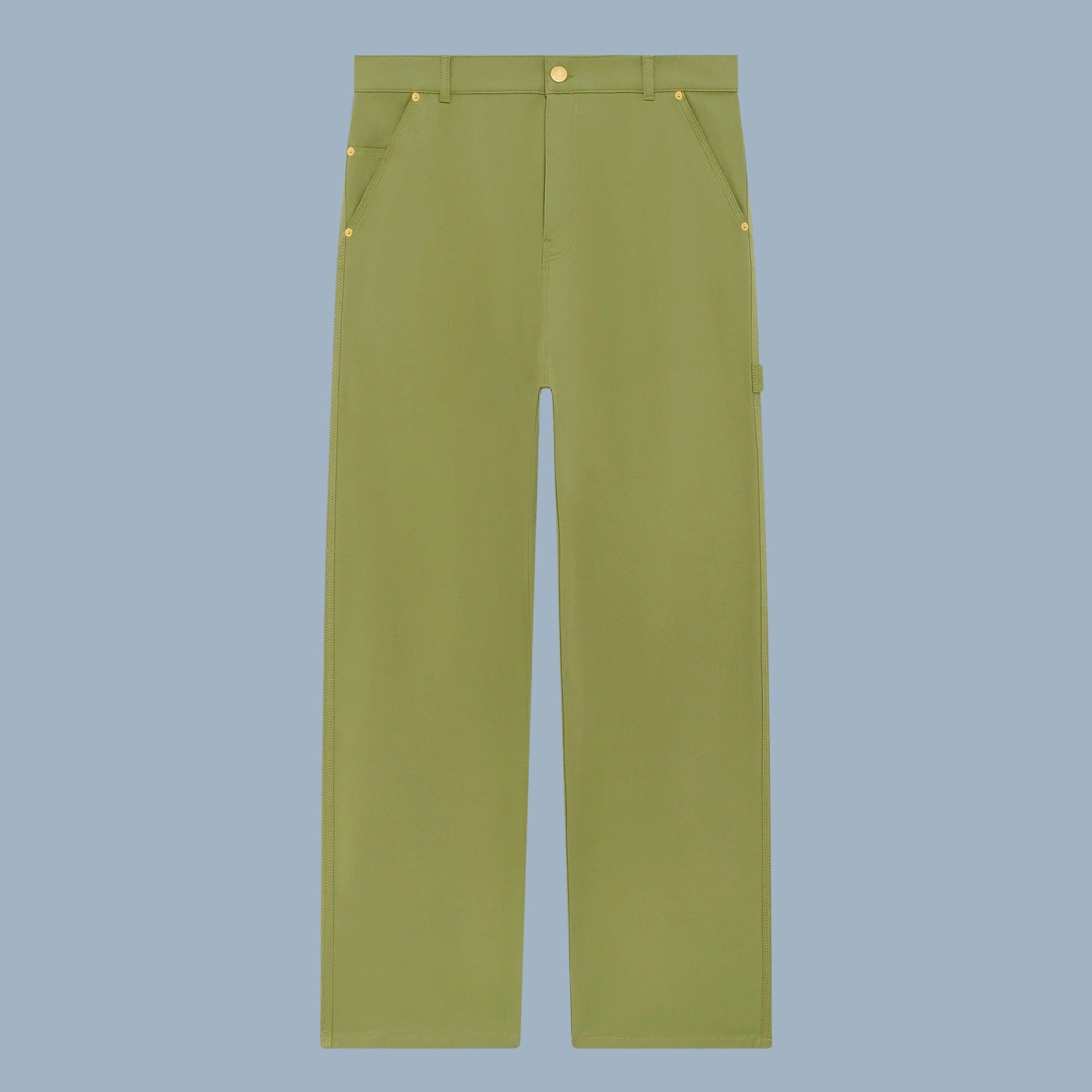 Drôle De Monsieur baggy pants in olive. Made in Bulgaria, of 97% cotton, and 3% elastane.