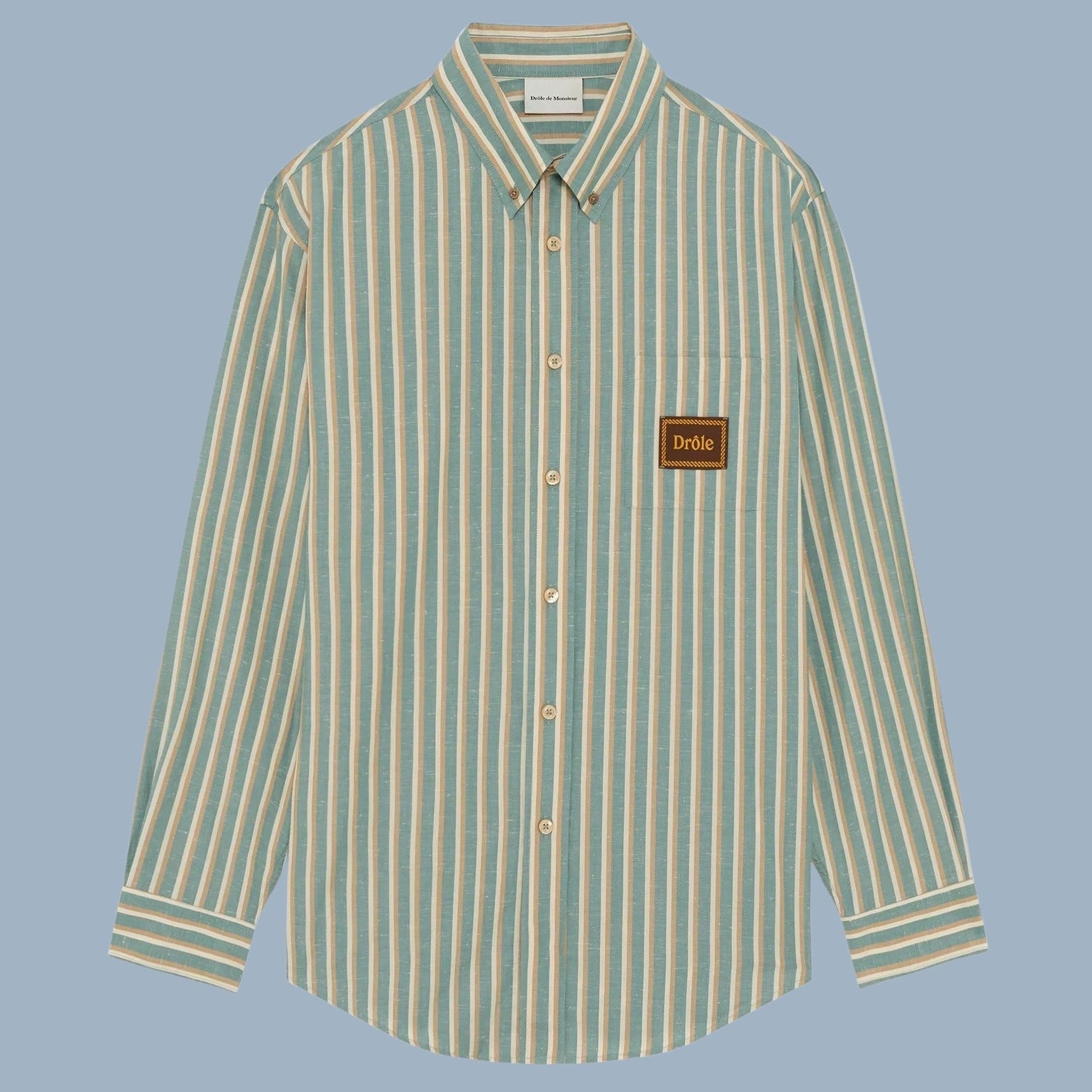 Drôle De Monsieur Rayée shirt in green. Made in Portugal, of 100% cotton.