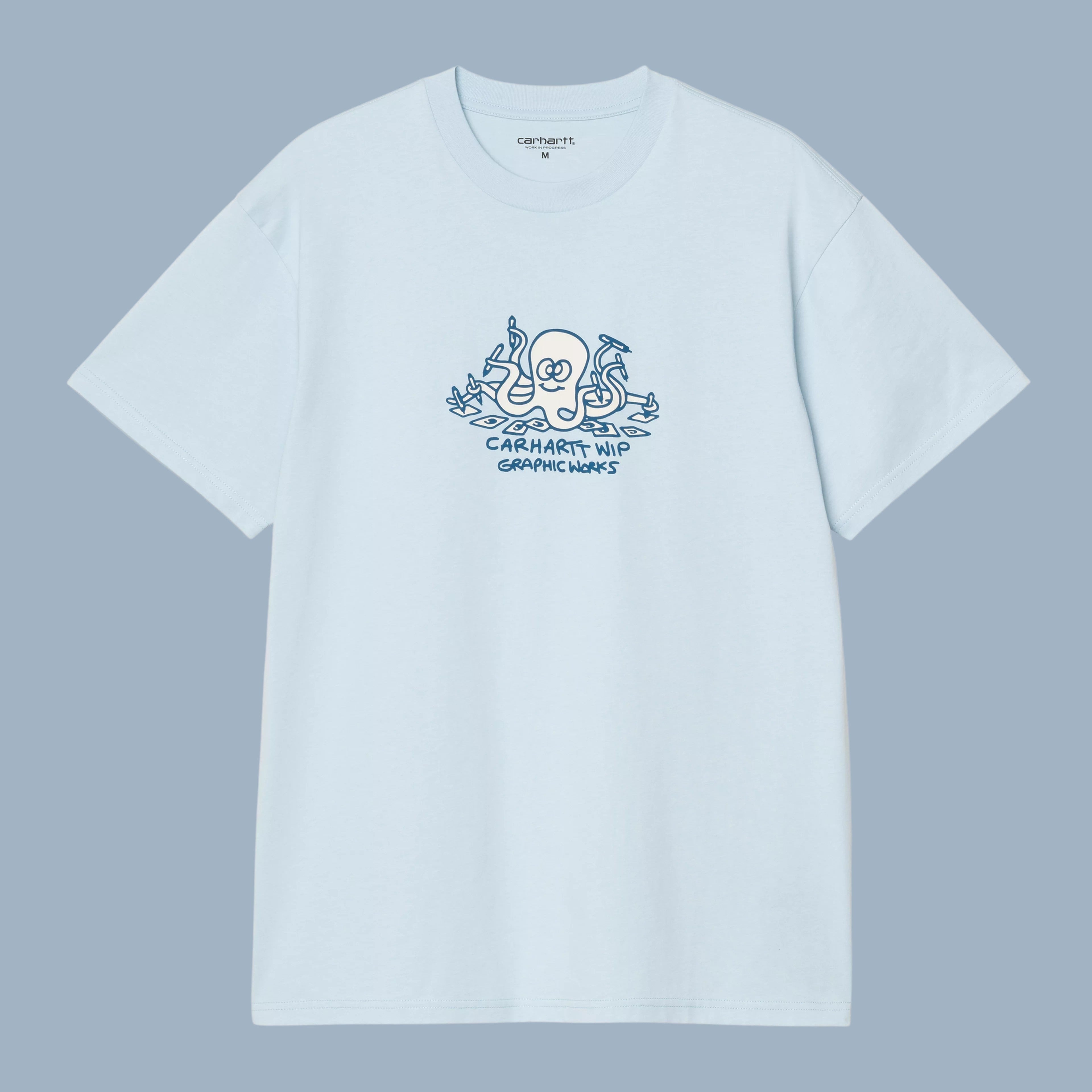 Carhartt ink lab graphic t-shirt in light blue. Made in Bangladesh, of 100% cotton.