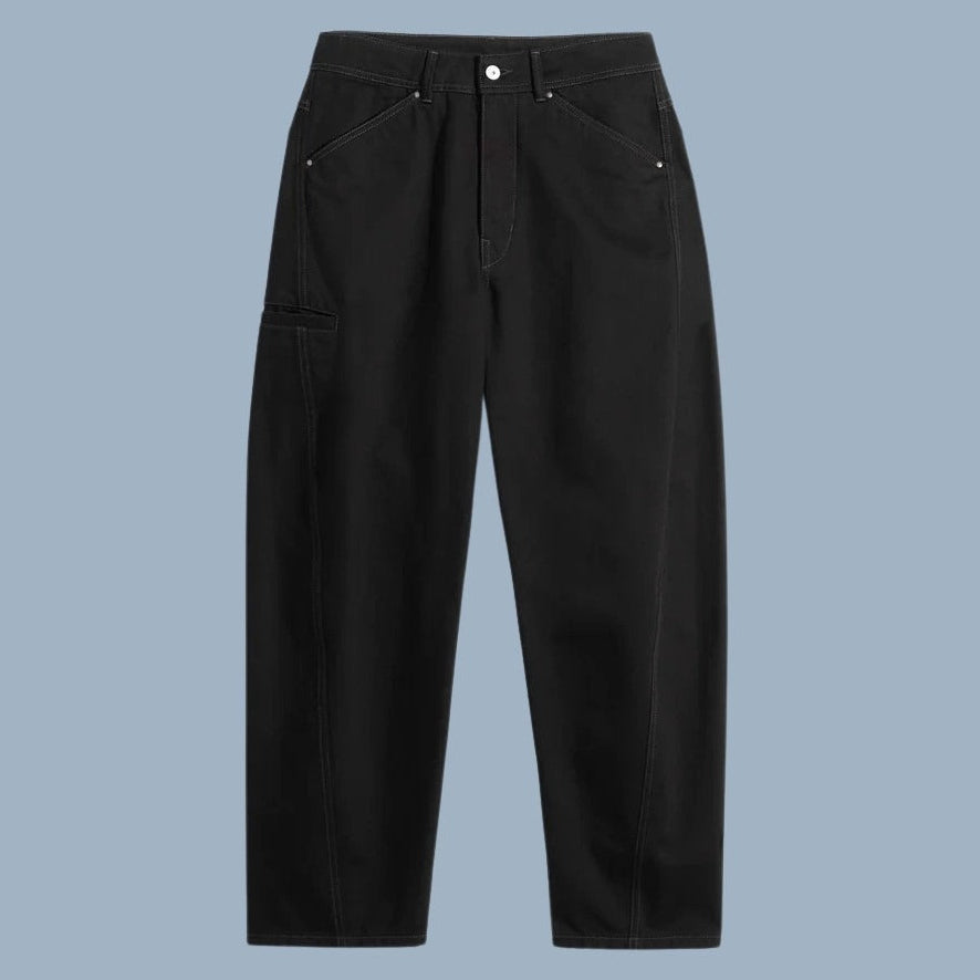 Lemaire twisted workwear pants in black. Made in Morocco, of 100% cotton.