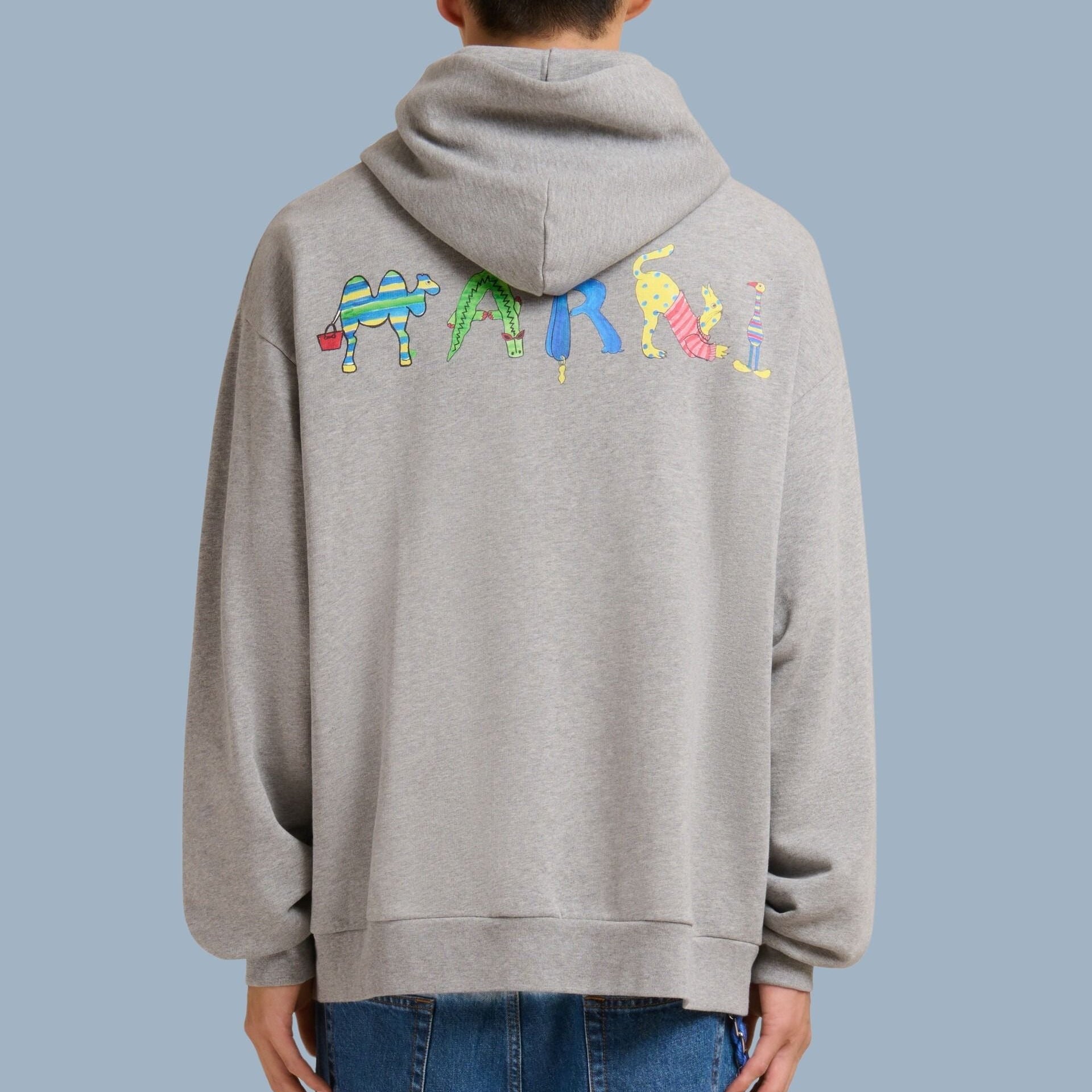 Marni graphic hoodie with camel print in grey. Made in Portugal, of 100% cotton.