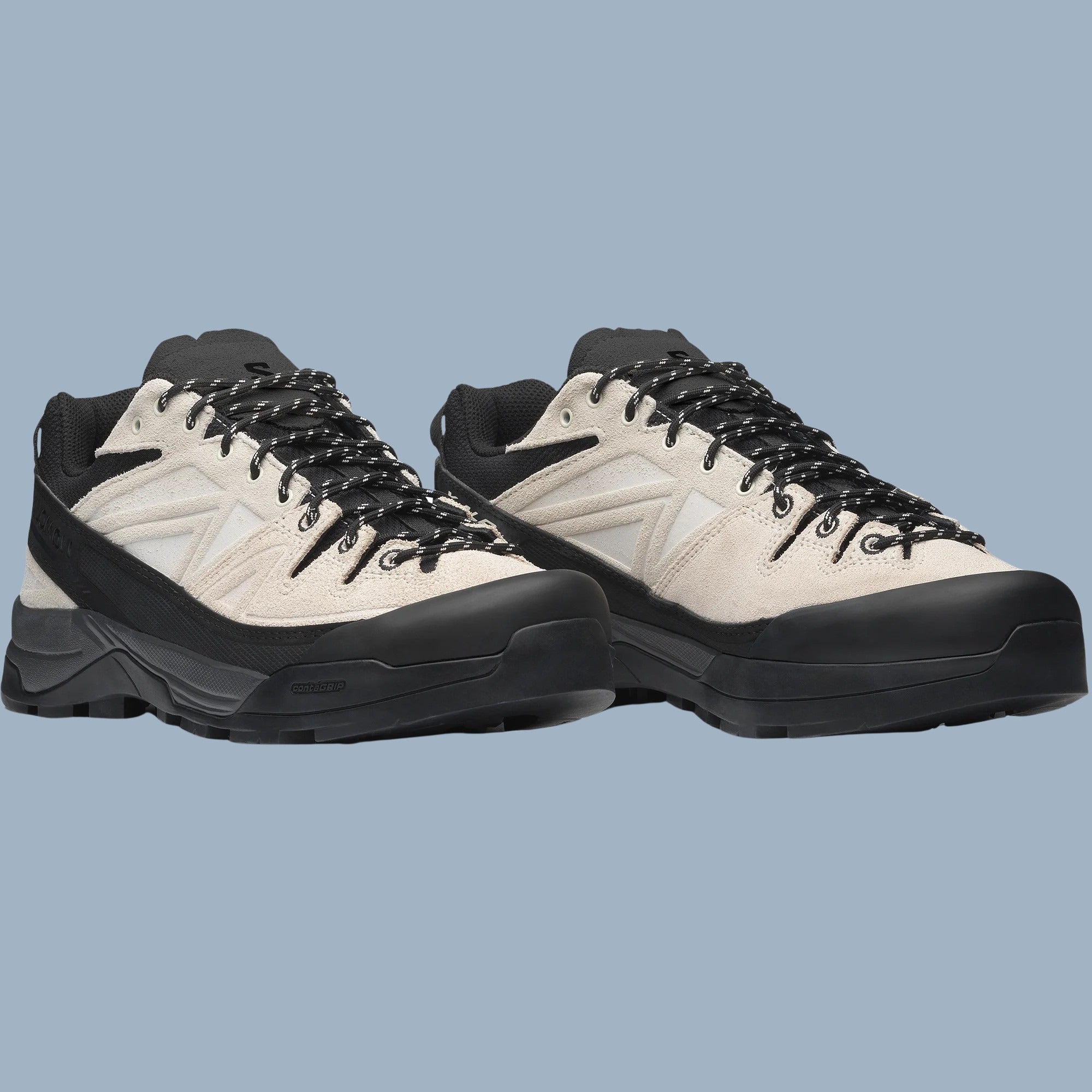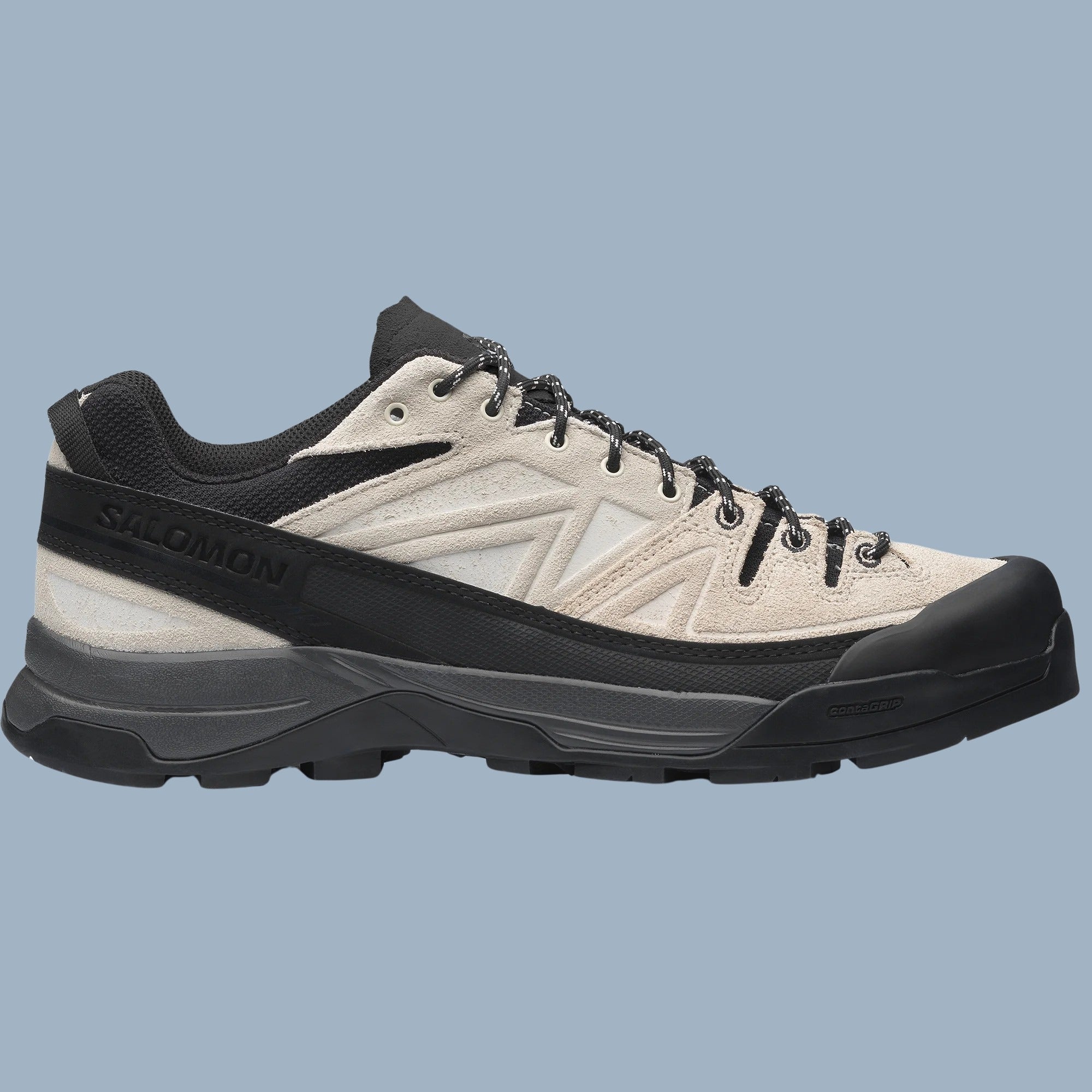 Experience durability and performance with Salomon's X-ALP Leather Shoes. These white and black shoes are designed for both rugged trails and urban environments, offering superior grip and stability with their Contagrip sole. Crafted from high-quality leather, they ensure comfort and longevity.